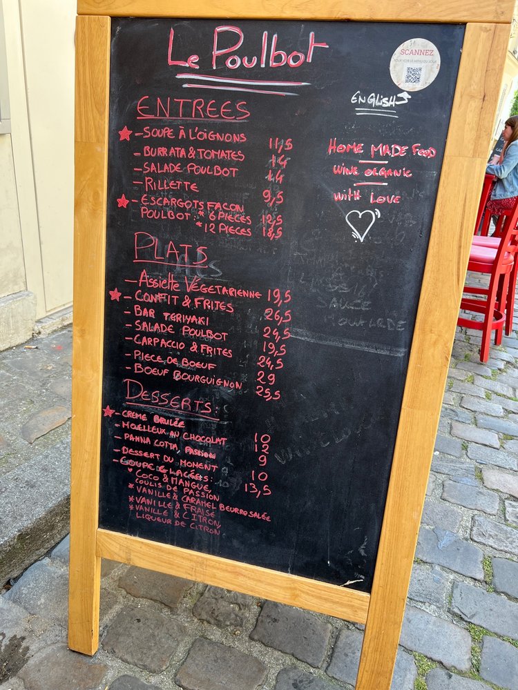 “ Edited for clarity. We had an enjoyable meal at Le Poulbot. We were a bit rushed with a time limit from our tour manager who only gave us 45 minutes for a dinner. I had tried to make a reservation while walking to the restaurant, but we arrived before I could finish the form. The manager, while not pleased that I hadnt finished making the reservation, he graciously sat us anyway. The Onion soup was excellent and perfect for a chilly evening. The desserts also were great, delicious comfort food. The staff were attentive and did everything they could to accommodate our schedule even on a busy evening. Do yourself and them a favor by making a reservation here. You wont be disappointed. ”